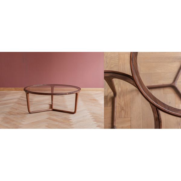 The nordic style solid wood round coffee tables living room coffee tables are produced with completely solid American black walnut, painted with walnut natural or brown, mortise and tenon joint construction, stable and durable. The tabletop is tempered glass. There are various sizes for your to choose from.